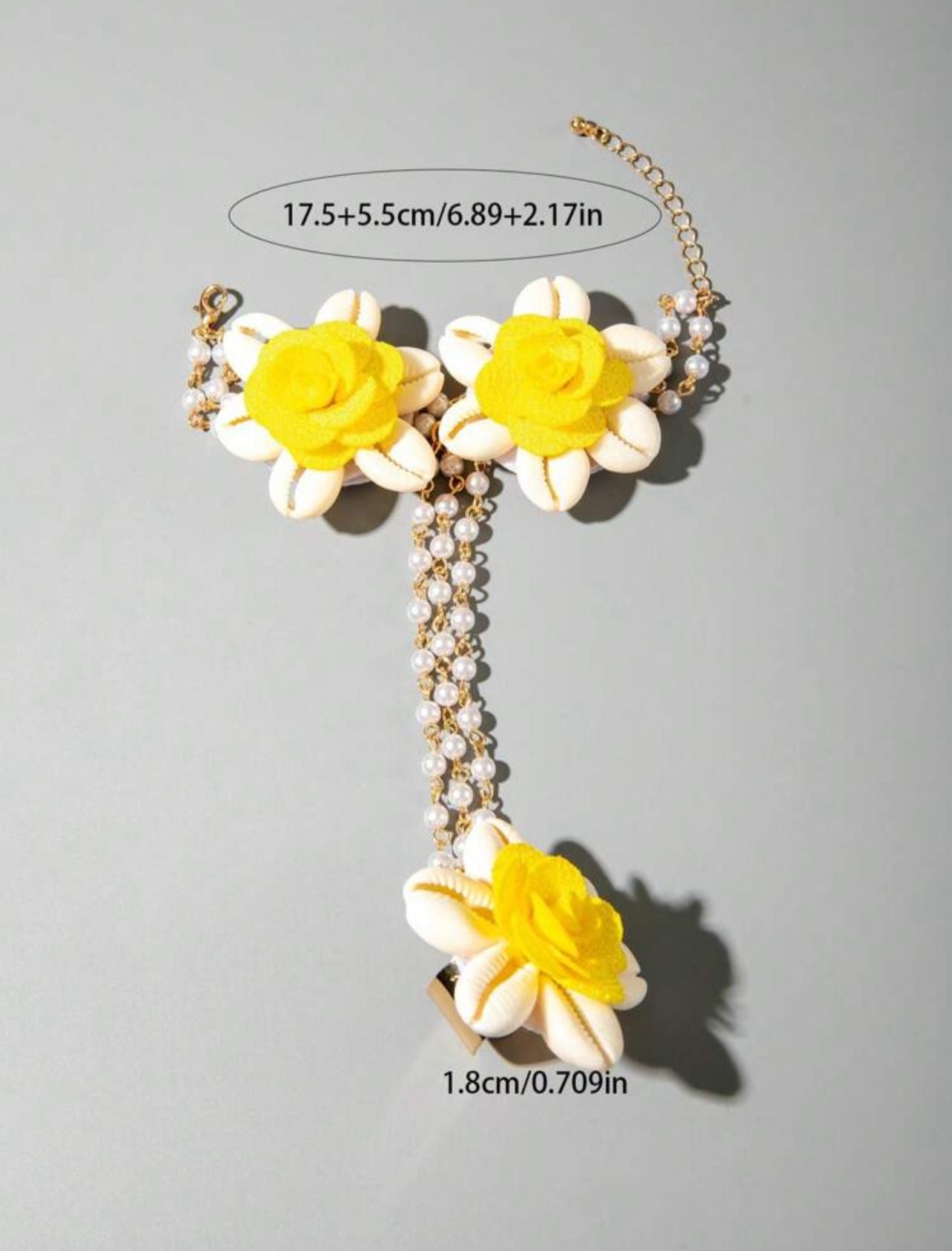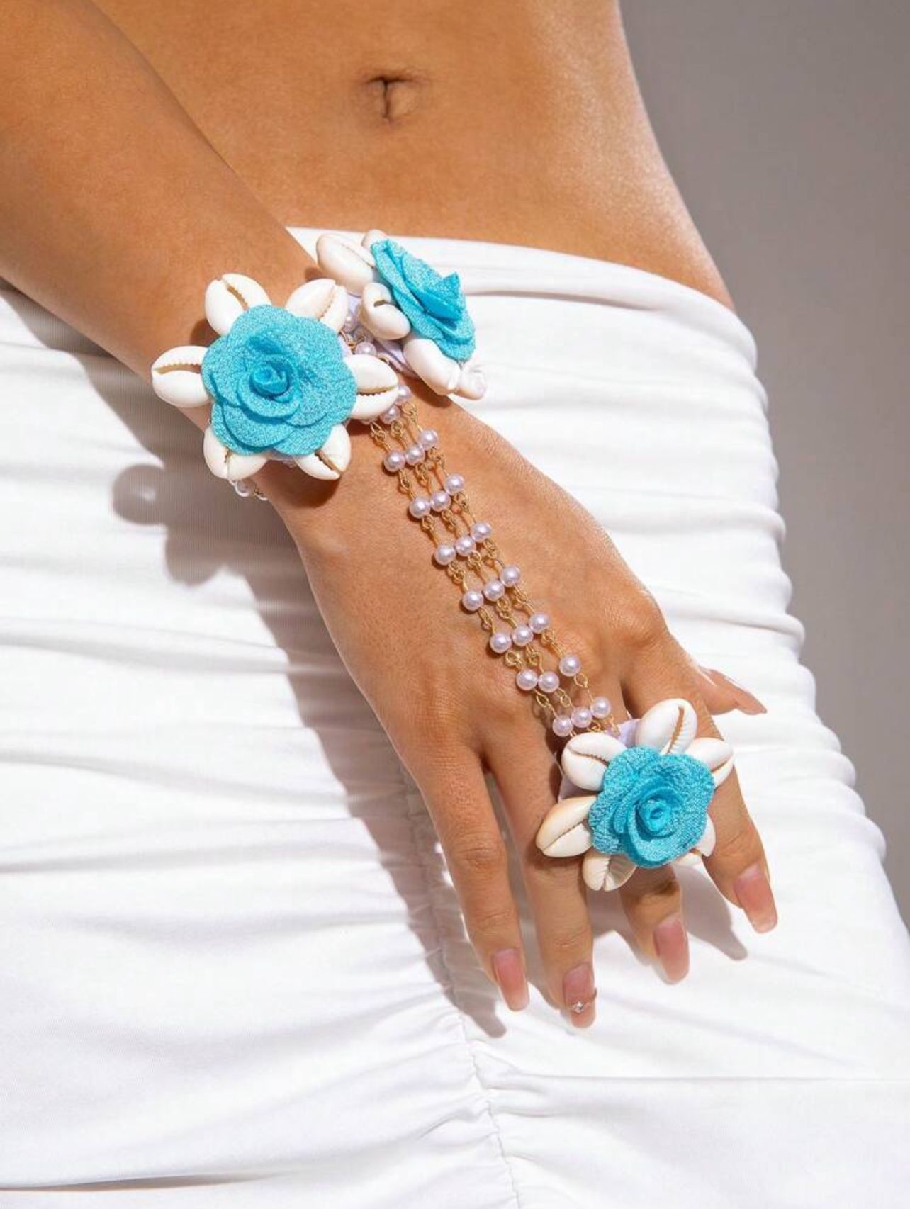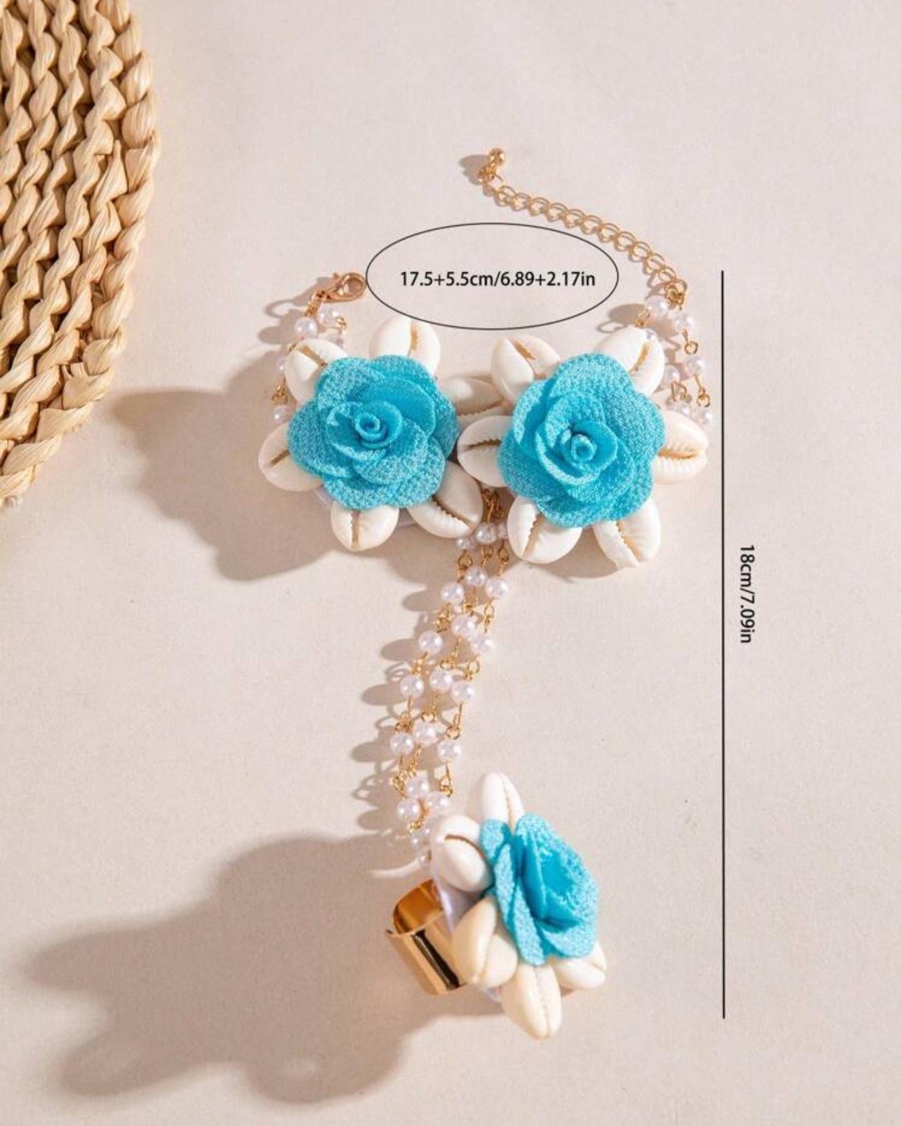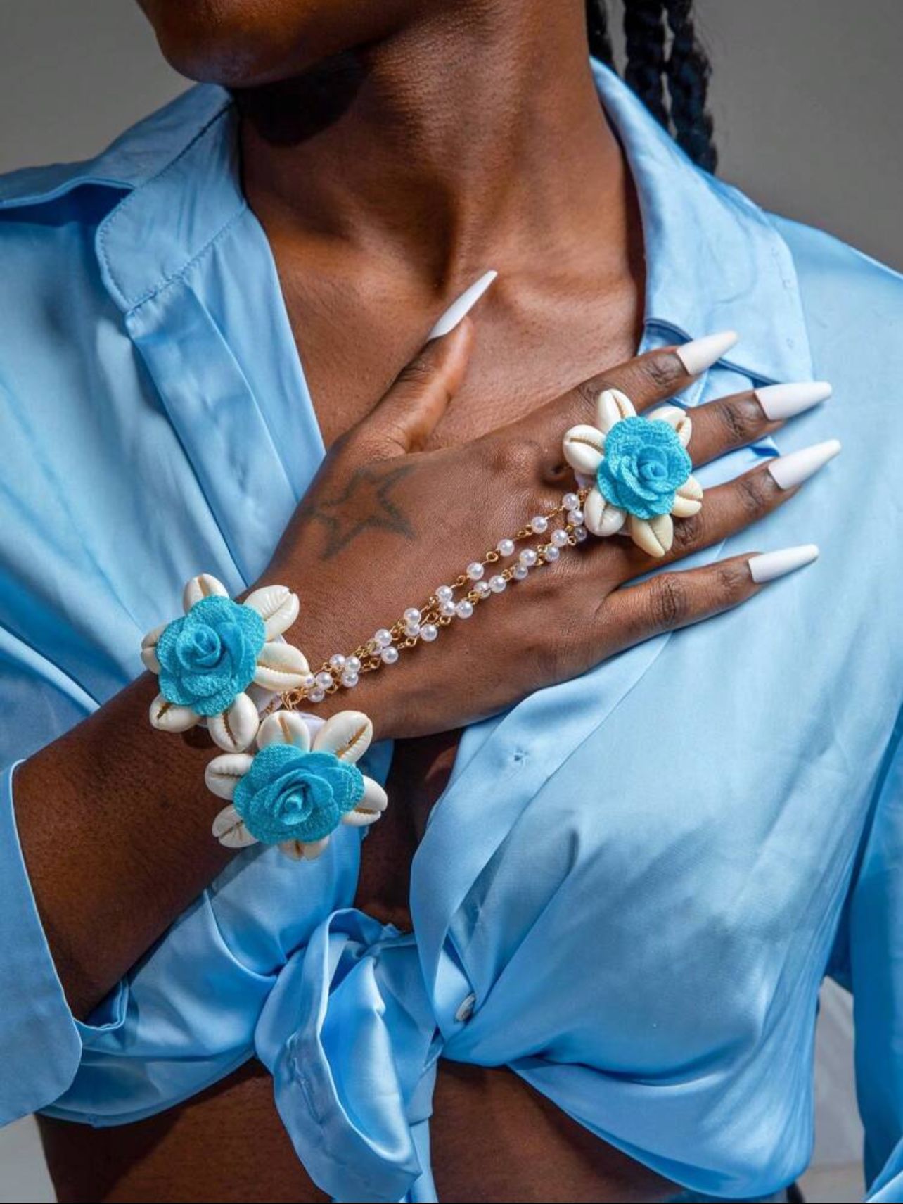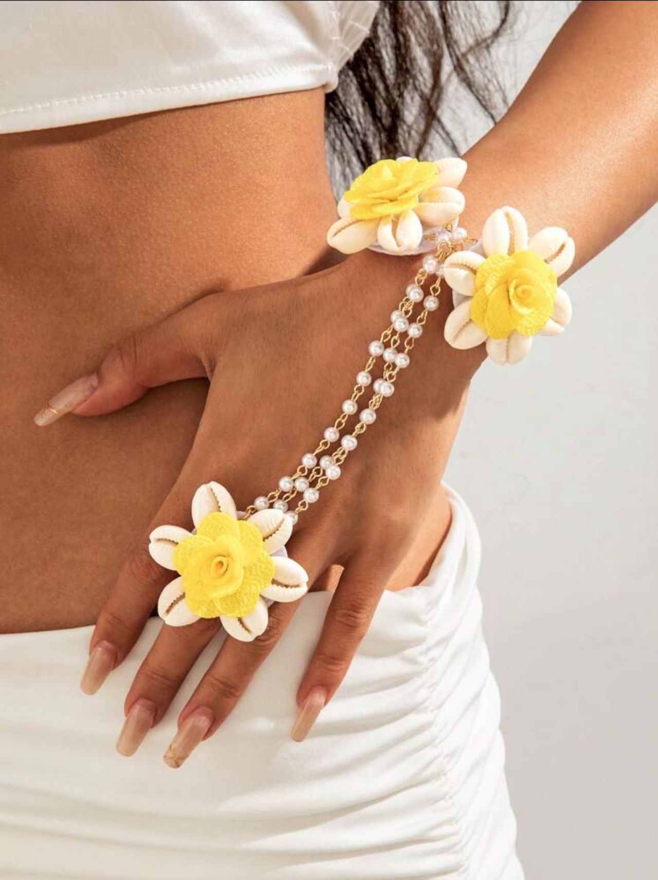 This flower bracelet and matching ring set is giving ethereal energy. With beaded links and fabric flowers, it’s the perfect accessory to take your festival fits, beach looks, or girlie moments to the next level.
