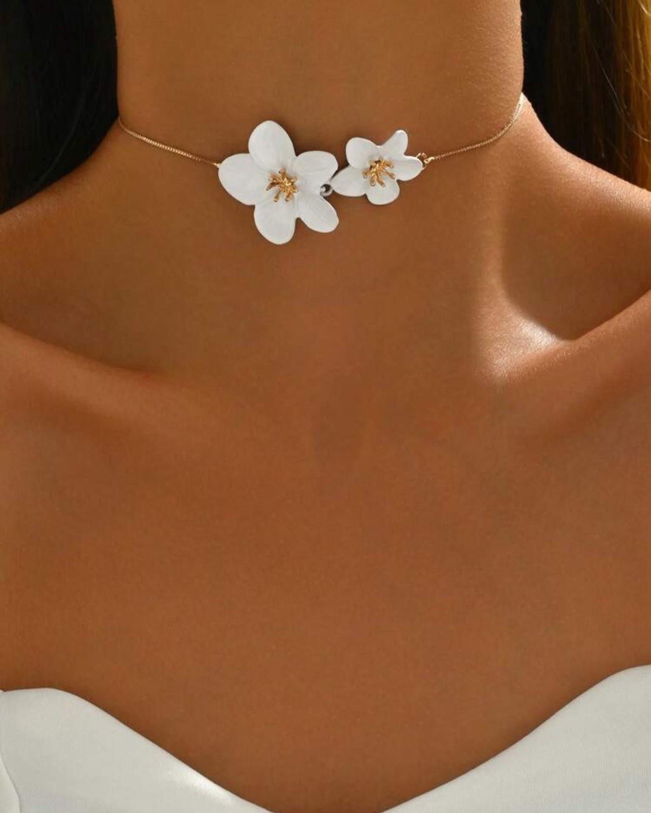 Soft petals, bold neckline. This choker is a fresh twist on feminine power.