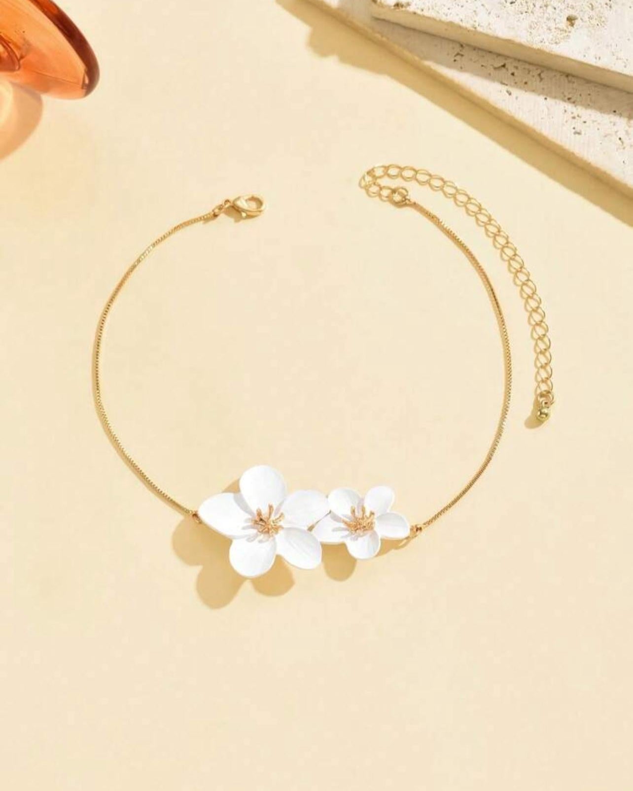 Features:• Twin white blossoms with gold centres• Fine, almost-invisible chain• Adjustable and featherlight• Statement piece for low-cut necklines