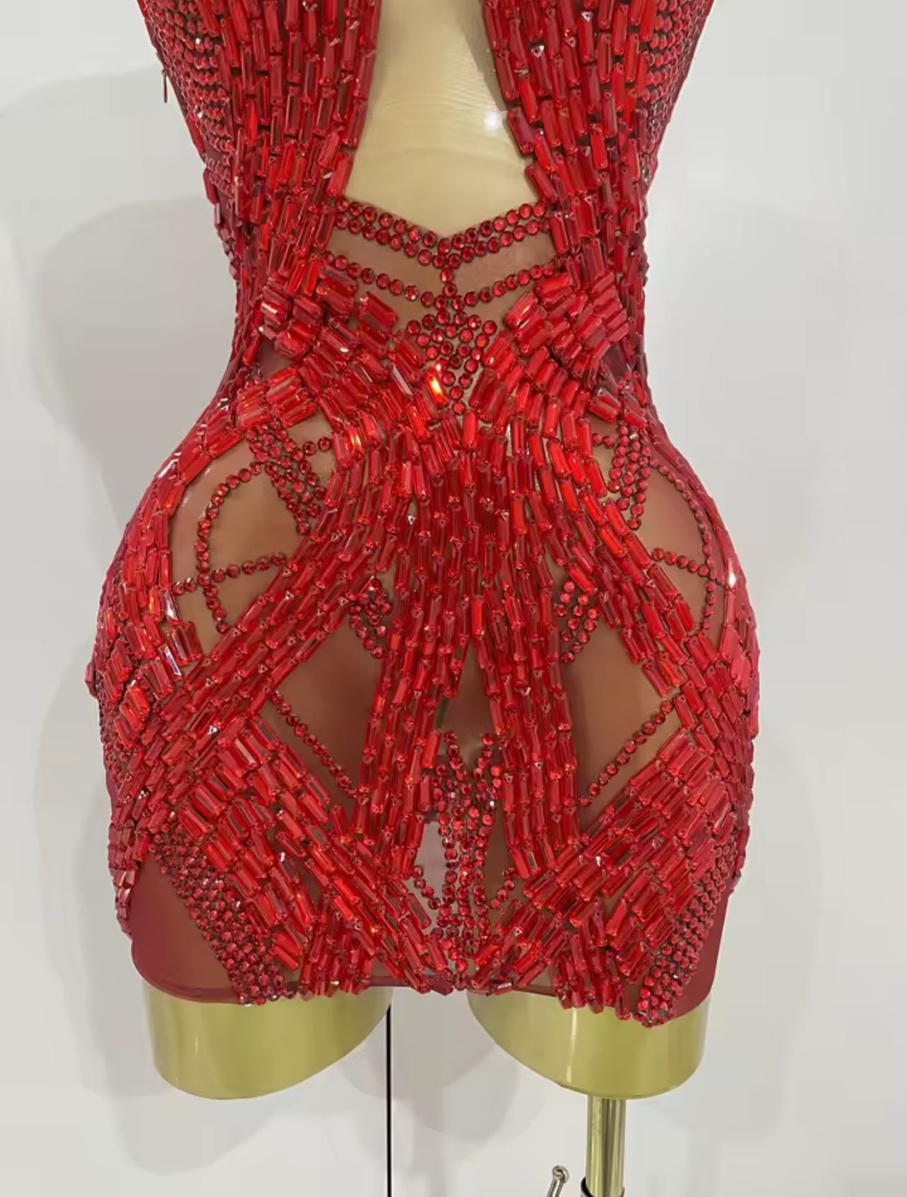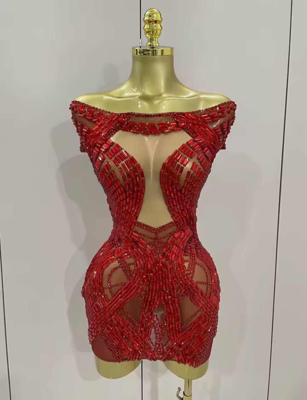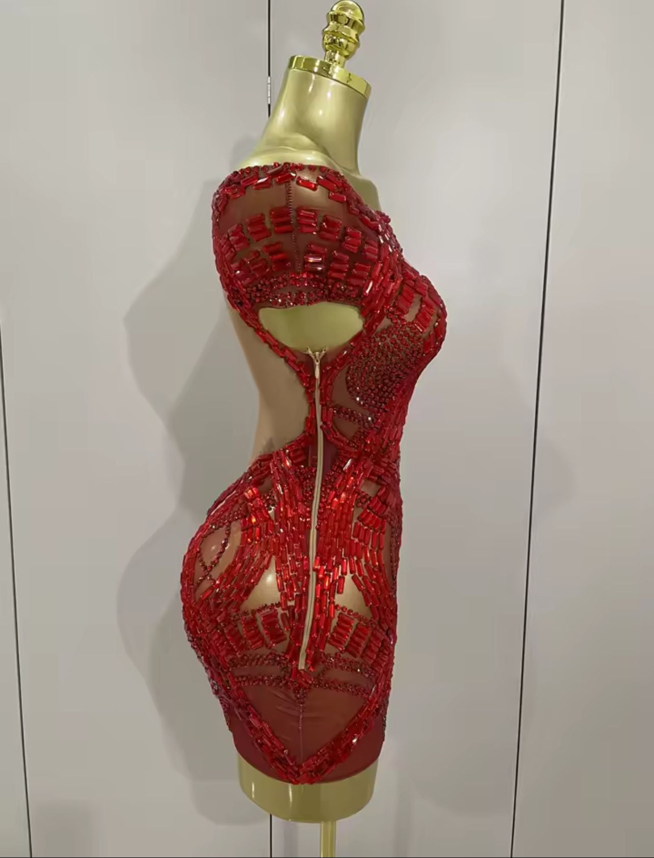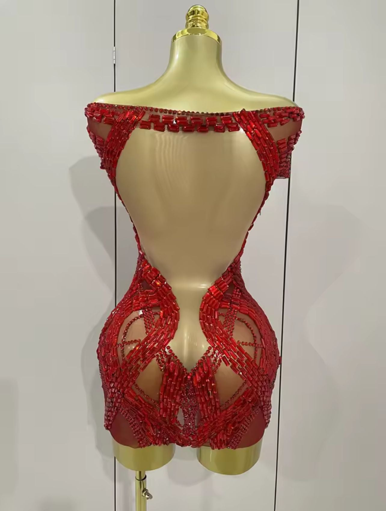 The Karmine Luxe Mini Dress is the definition of red-hot elegance. Designed with intricate beadwork and daring cut-outs, this off-shoulder silhouette sculpts your figure and commands attention from the moment you enter the room. Bold, glamorous, and unapologetically sexy,this is your power move dress.