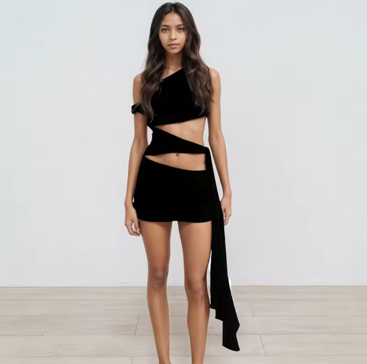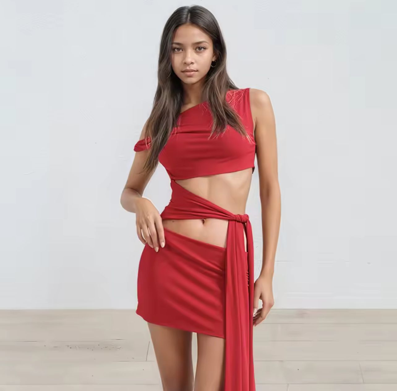 This draped dress is the ultimate statement of fierce femininity. Designed with asymmetric cuts and tie-side detailing, it sculpts the body while leaving just the right amount to the imagination. Available in deep red, earthy brown, and classic black, it’s the perfect balance of bold and sensual. From nights out to sun-drenched escapes, this look demands attention.