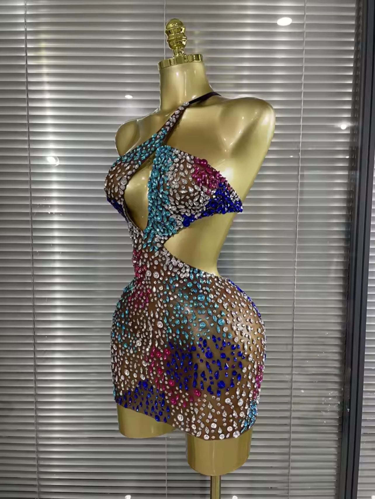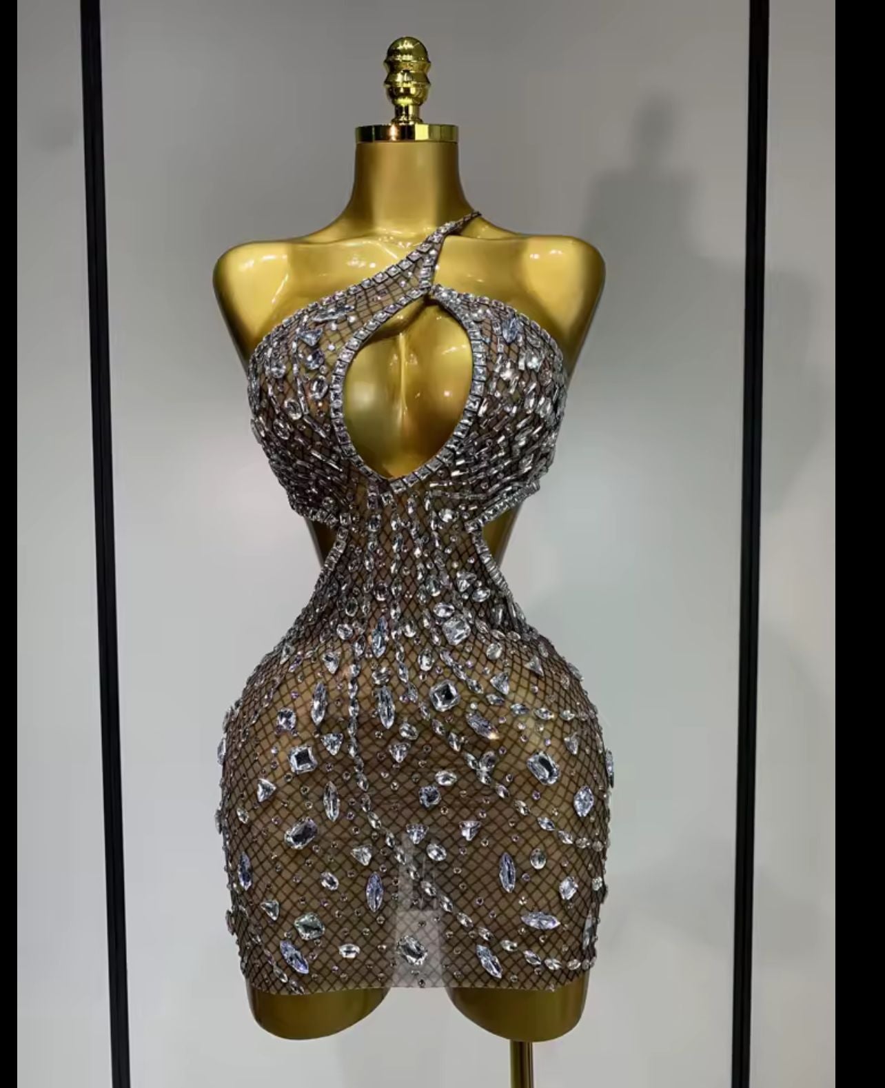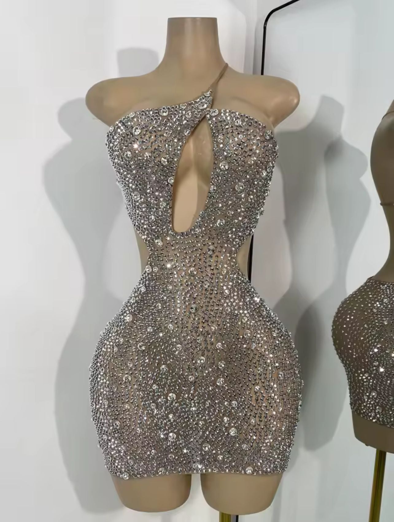 All eyes on you. The KARIS mini dress is a masterpiece of sparkle and seduction, designed to sculpt your figure while commanding every room you walk into. Covered in dazzling silver embellishments and finished with daring cut-out details, it’s the ultimate statement for nights where blending in is not an option.